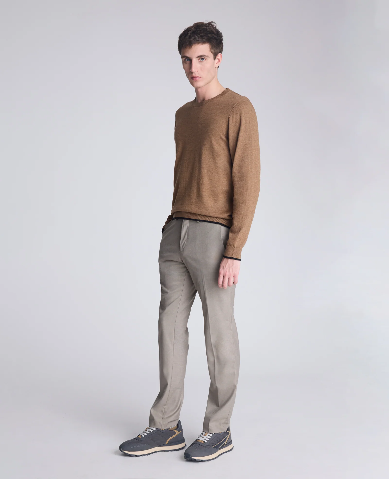 Crew Neck Sweater with Tipping Details